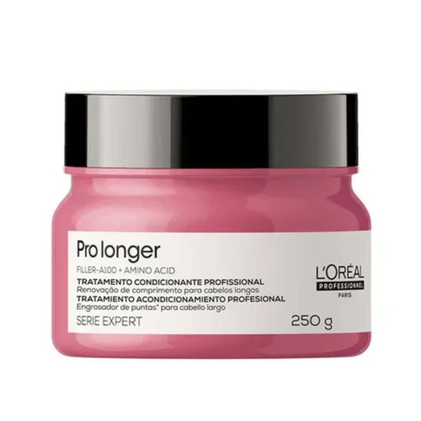 Máscara de tratamento para cabelos longos com pontas afinadas ou danificadas. L'Oréal Professionnel Serie Expert Pro Longer hidrata e devolve densidade aos fios. Com ação renovadora, a Máscara L'Oréal Professionnel Serie Expert Pro Longer confere uma redução de até 66% das pontas duplas, graças a sua fórmula que contém ativos poderosos e inovadores. O resultado que a máscara L'Oréal Pro Longer entrega é um cabelo longo mais forte, denso, com brilho e preenchimento de pontas danificadas e afinadas.