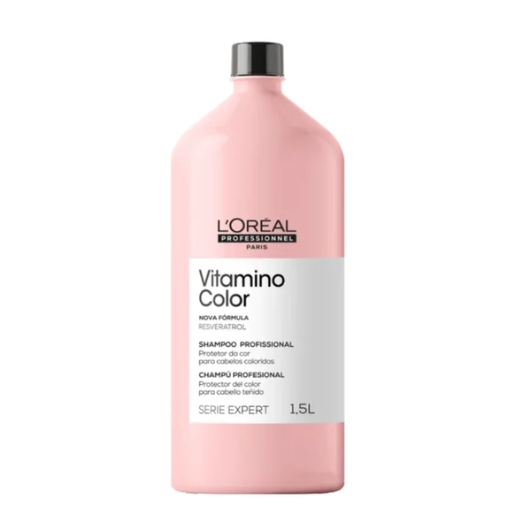 Shampoo para cabelos coloridos. L’Oréal Professionnel Serie Expert Vitamino Color Resveratrol realiza uma limpeza delicada que não agride e mantém o brilho da cor. O Shampoo L’Oréal Professionnel Vitamino Color Resveratrol conta com fórmula antioxidante que evita os danos do dia a dia e o desbotamento. Enriquecido com Resveratrol, ajuda a restaurar e proteger contra os radicais livres, agentes oxidantes e os raios UV, responsáveis pela degradação da cor. O primeiro passo para cabelo com a cor vibrante e protegida por mais tempo.